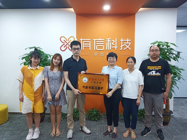 本网讯(记者 尚云鹏)6月1日,公司副经理罗军、蔡沂,就业专员尚云鹏与广州有信科技有限公司签订就业与实习基地协议并举行了授牌仪式。公司创始人、CEO林少章与人力资源部负责人出席了仪式。