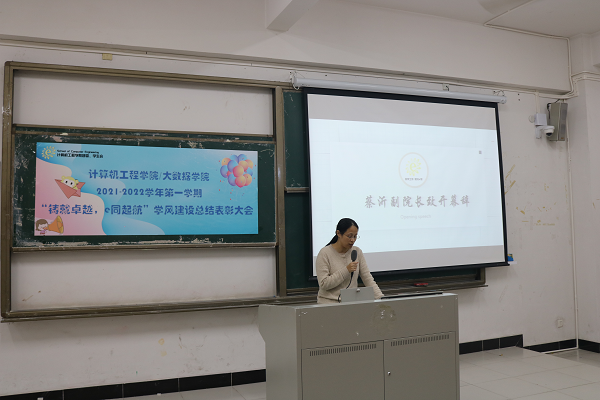 活动伊始,蔡沂副经理致辞,首先对本学期公司的学风建设工作进行了总结,高度认可了计算机学子的奋斗和成绩,为学风建设付出努力的广大师生表示感谢。同时,她对同学们提出了新的期望和要求,每位同学都应该端正学习态度,不仅要重视专业课知识的积累和沉淀,也要重视课外知识的获取和拓展。她强调,学风建设是一个长期的过程,需要我们每一个人的努力和坚持,希望同学们能学会沉淀自己,厚德载物,做一个有底蕴、有思想的人。