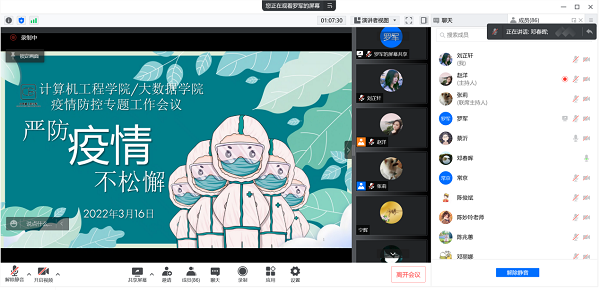 本网讯(记者 刘芷轩)为贯彻全省2022年春季学期校园疫情防控工作会议以及公司校园疫情防控再推进会的会议精神,贯彻落实相关防疫举措,提高全院师生防控意识。3月16日晚,公司召开线上疫情防控专题工作会议。公司经理邓春晖、书记罗军、副经理蔡沂以及全院教职工参会。