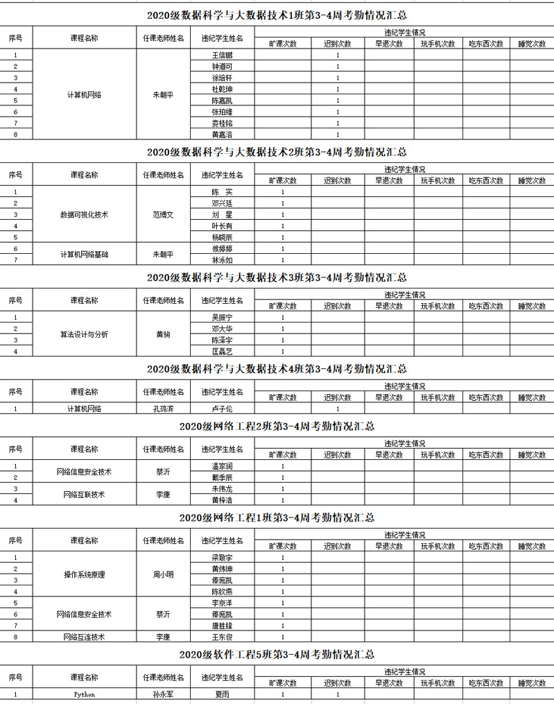 2022-2023学年度第一学期3-4周考勤情况通报