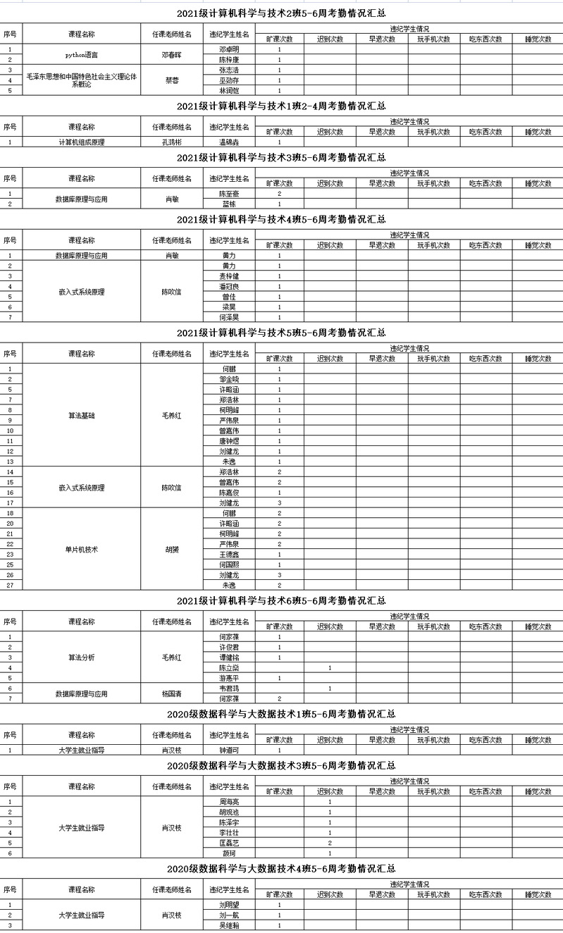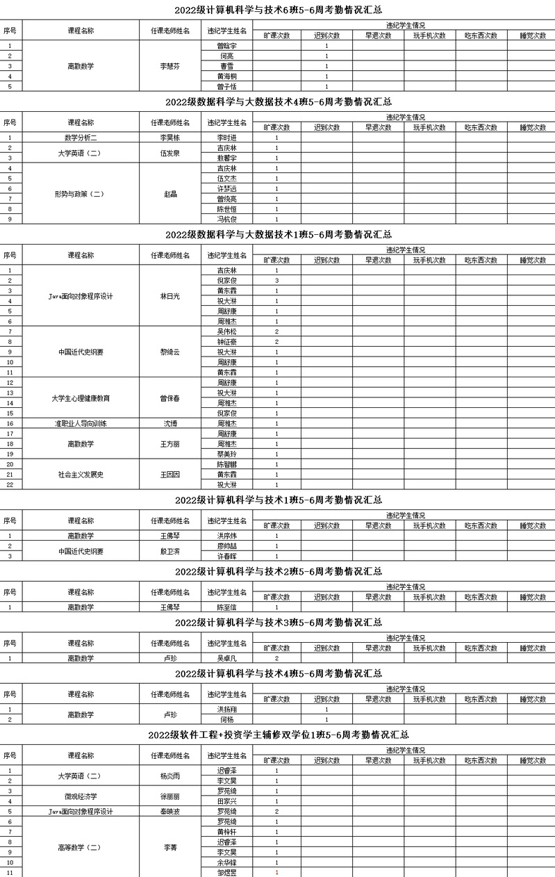 2022-2023学年度第二学期5-6周考勤情况通报