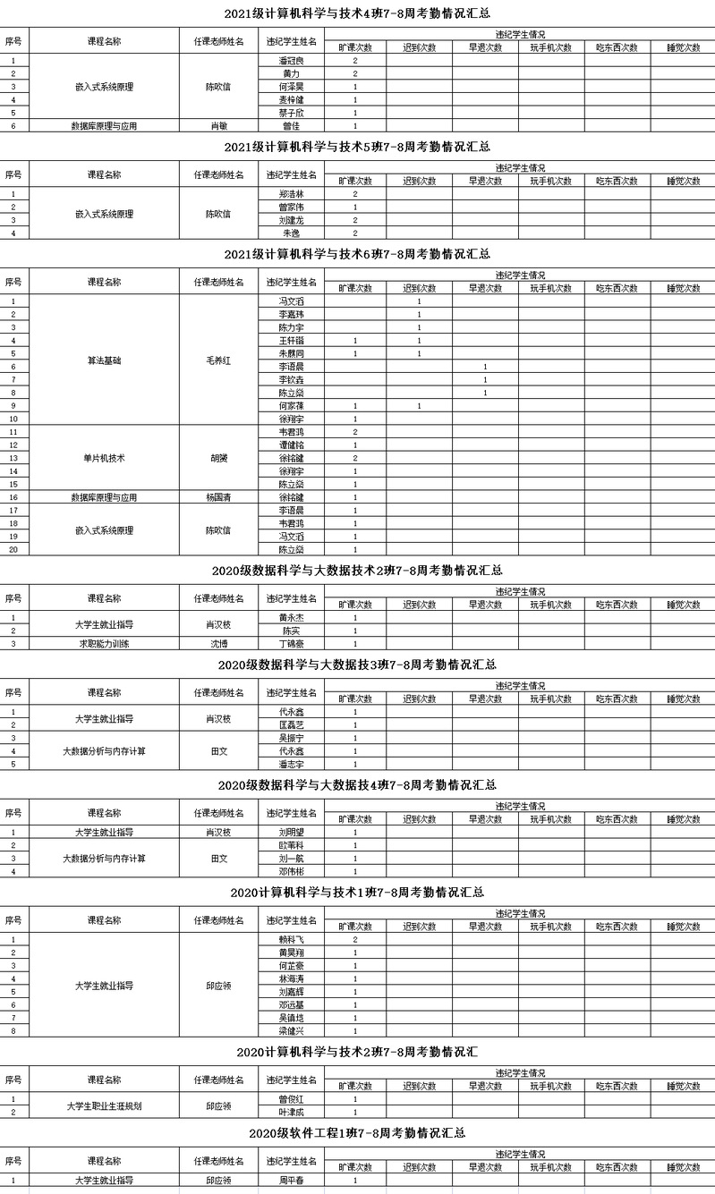 2022-2023学年度第二学期7-8周员工考勤情况通报