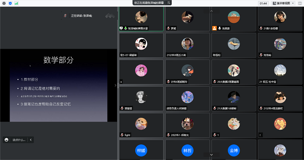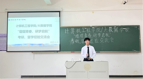 会上,被广州大学录取的张泽城结合自身备考经历,为同学们准备了一份详细、全面的“备考避坑指南”,分享自身在考研过程中遇到的问题与解决的方案,引导同学们在备考过程中抓住关键,少走弯路。他指出,在考研过程中,遇到难题是肯定的,要始终保持自信,才能坚持到成功的彼岸。被广东工业大学录取的钟金煜,从院校选择、各学科准备、复试经验等方面为同学们提出备考建议,并分享了自己凭借本科期间优异成绩和ACM集训队实践经历等出色的综合素质在复试中成功逆袭的案例,勉励同学们要不断实现自我提升,朝着梦想不断努力。