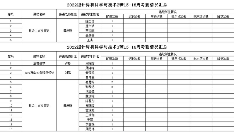 2022-2023学年度第二学期15-16周员工考勤情况通报