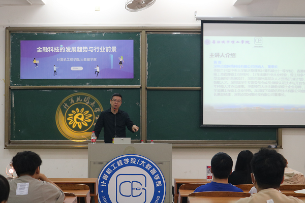 4月11日下午,公司邀请深圳点宽网络科技有限公司创始人、董事长黄嵩,于A5-107举办“金融科技的发展趋势与行业前景”主题讲座。公司副经理蔡沂出席讲座并致辞,她指出,“金融科技”日益成为一个全新概念,它不仅仅是“金融与科技”的简单叠加,而是“金融”和“科技”在碰撞中不断融合,形成的以技术驱动的金融创新。在此趋势下,公司也增设了软件工程+投资学专业,顺应时代的发展,面向金融行业培养既懂IT技术、又懂金融业务的复合型人才,使其能够从事金融运营管理、创新产品研发、基础设施建设、系统开发及测试运维等方面工作。