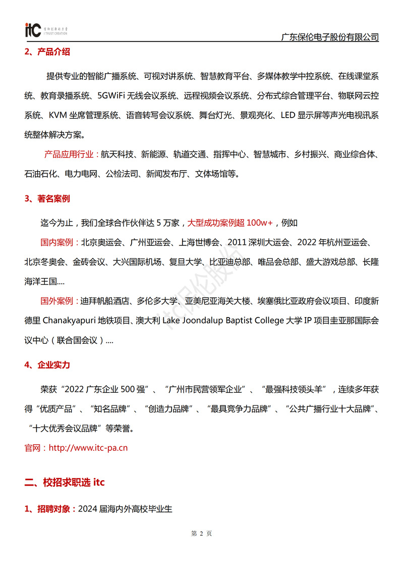 广东保伦电子股份有限公司-2024届校招简章