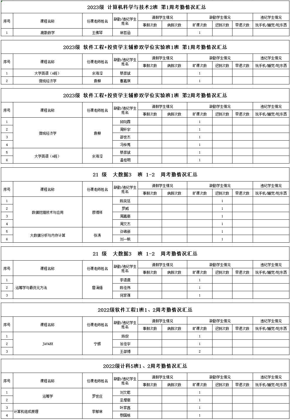 2023-2024学年第二学期员工考勤情况通报