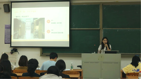活动现场,十四位候选人依次亮相,通过PPT展示分享各自在宿舍管理、文化建设、团队协作等方面的成果和亮点。他们分别以幽默风趣的语言讲述宿舍内的趣事和温馨瞬间,或通过详实的数据和图表,展现宿舍在卫生、纪律、学习等方面的优异表现。最终由评委老师根据各候选人的主要事迹、现场汇报、领导能力等内容进行综合打分,评选出十位同学当选“十佳宿舍长”。