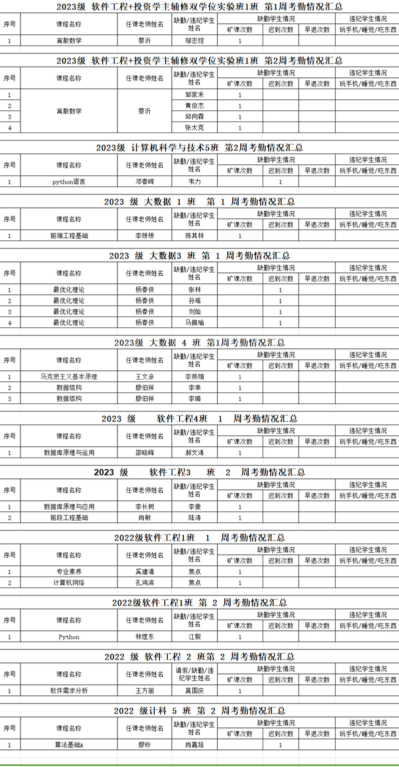 2024-2025学年度第一学期1-2周员工考勤情况通报