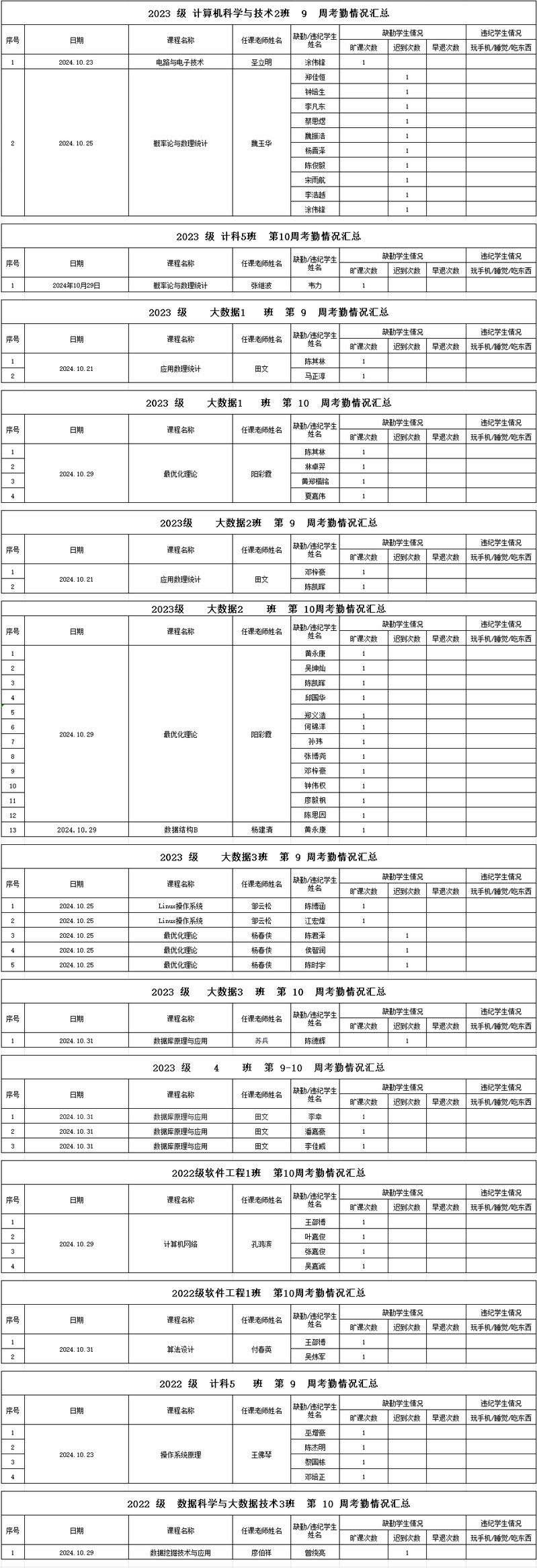 2024-2025学年度第一学期第9-10周员工考勤情况通报