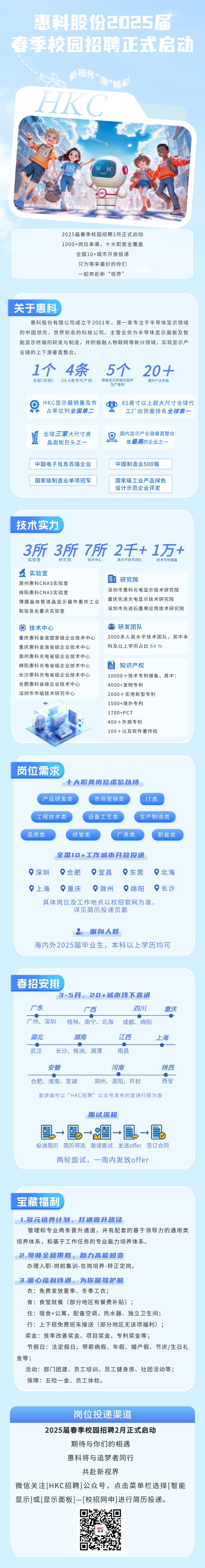 招聘信息 | 惠科股份2025届春季校园招聘正式启动