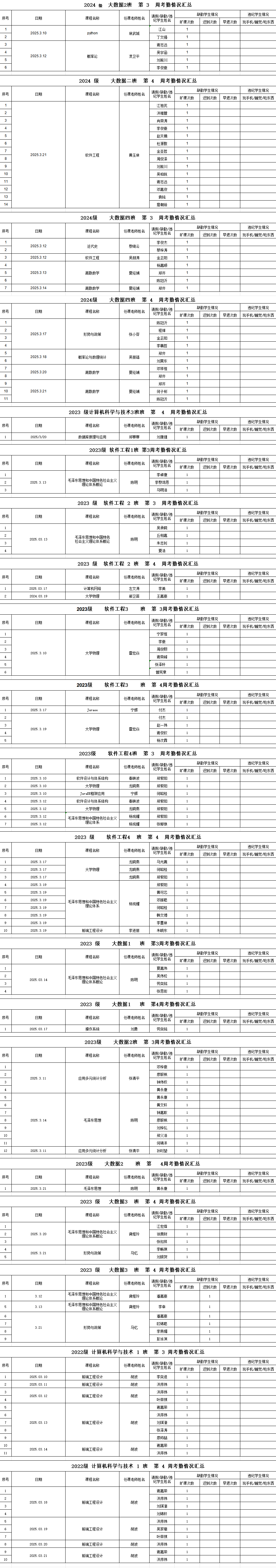 2024-2025学年度第二学期第3-4周员工考勤情况通报