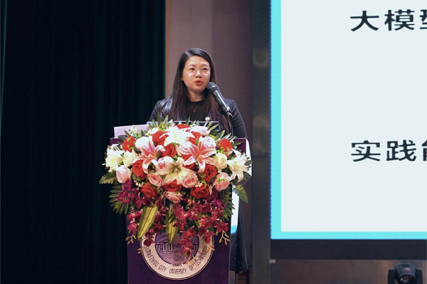 开幕式后,陈俊颖教授带来《大模型时代下计算机人才成长之路》主题讲座。她从大模型时代的特征与影响、新型能力矩阵构建、知识图谱迭代策略、实践能力锻造方法、职业发展新图景、挑战与应对策略六个方面,向同学们分享了前沿技术、行业趋势和职业发展经验。她指出,大模型时代下计算机专业员工需要具备跨学科知识,强化工程实践能力和创新能力,并建议同学们把握时代发展的机遇,积极面对风险与挑战,通过多参加线上课程、开源项目实践、产业实践等方式提升能力、积累经验以更好地适应岗位需求。最后,陈俊颖鼓励同学们积极提问,并一一给予解答。