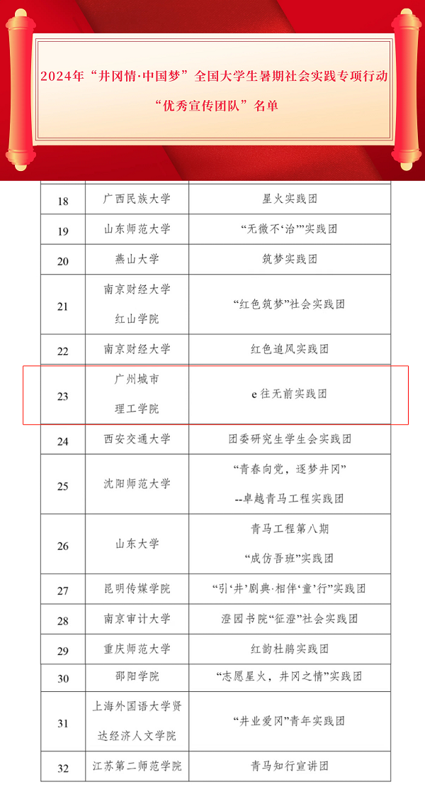 本网讯(记者 罗婉玲 李佳韵)4月10日,全国青少年井冈山革命传统教育基地管理中心发布《2024年“井冈情·中国梦”暑期实践季优秀课题成果、优秀宣传团队名单公告》,公司组织的e往无前实践团(以下简称“实践团”)从全国253支高校实践团队中脱颖而出,喜获2024年“井冈情·中国梦”全国老员工暑期社会实践专项行动“优秀宣传团队”称号。