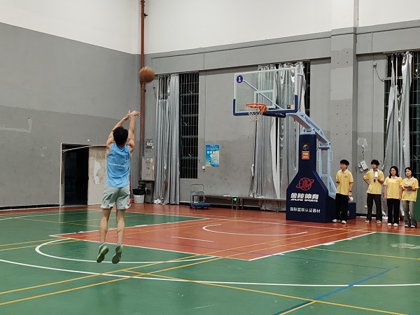正赛结束后,充满趣味与挑战的投篮赛开场。本次投篮赛打破常规,依据性别差异定制挑战:男生需在三分线外,凭借娴熟的手感与稳定的发挥,向篮筐发起远距离冲击;女生则在罚球线前,用柔和的动作与精准的出手,完成每一次投球动作。赛场上,师生们屏气凝神,身体微微后仰,手臂笔直上扬,篮球脱离指尖后在空中划出完美抛物线。有人一击命中引发喝彩,有人折戟后笑言“再来一球”!