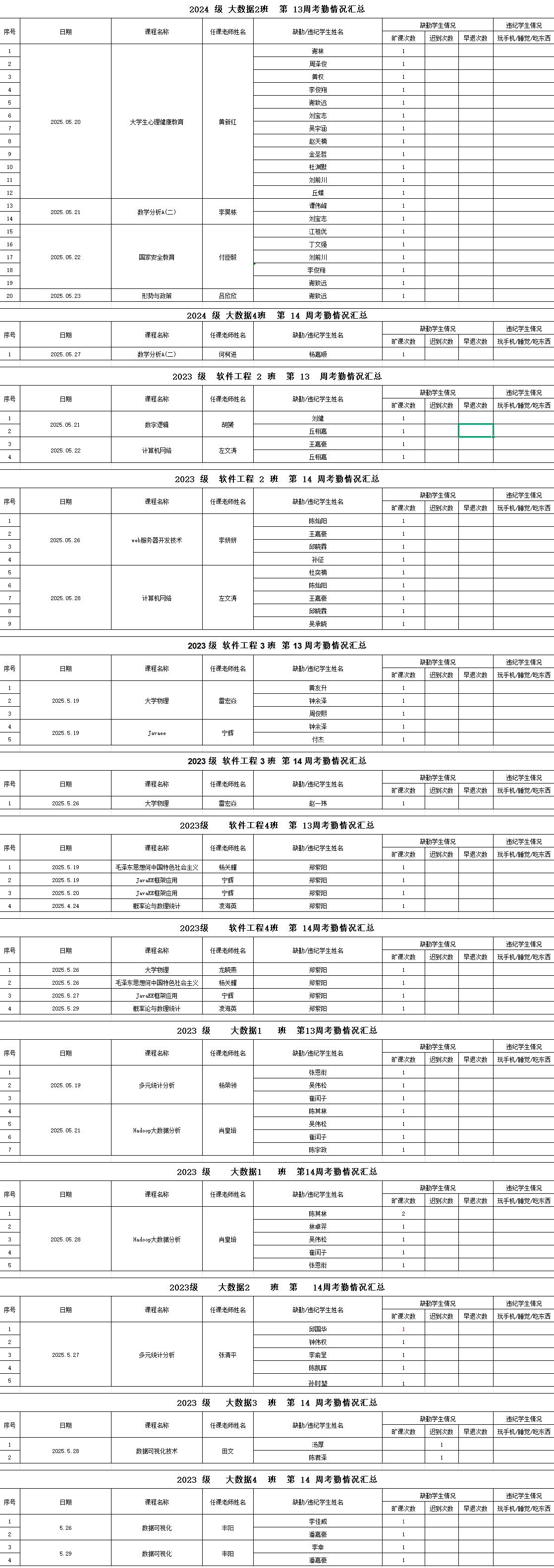 2024-2025学年度第二学期第13-14周员工考勤情况通报