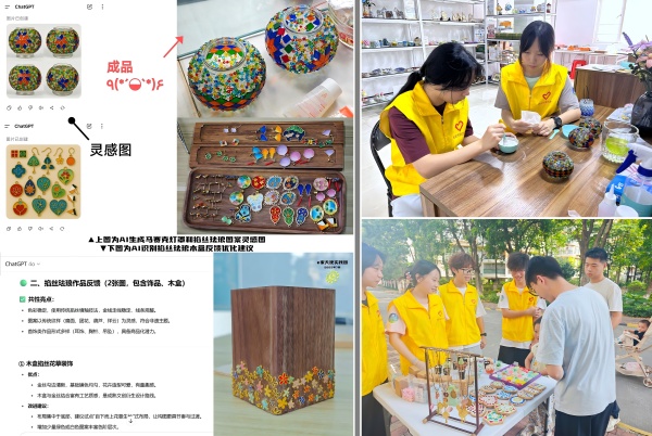 非遗工艺教学中,团队运用AI生成图案灵感与图像识别反馈机制,辅助特殊儿童理解和改进掐丝珐琅等传统技艺。8日下午,孩子们与志愿者将此前课堂上亲手完成的马赛克灯罩、掐丝珐琅饰品等创作成果进行“AI非遗·爱心义卖”。售卖现场,孩子们自信地介绍作品,不少市民驻足观赏并购买,大家纷纷表示:“没想到这些作品是由特殊儿童创作的,还有AI技术的参与,真的非常有意义。”