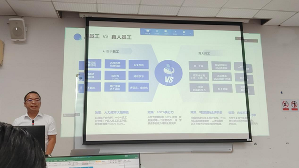 本网讯(记者 凌海英)8月26日下午,广州为伊科技有限公司创始人、广东省直播电商产业联盟副秘书长陈洋成,为伊科技工程师吴铭泽两位专家应邀莅临公司,为公司教师带来了一场AI智能体开发与应用的培训。本次培训旨在深化校企合作,将业界最新的人工智能应用实践引入校园,助力教师了解前沿技术动态,反哺教学与科研工作。