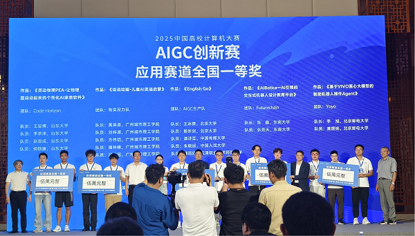 本网讯(记者 黎雪)8月25日,“2025中国高校计算机大赛-AIGC创新赛”应用赛道决赛答辩在东莞圆满落幕。决赛采用线下答辩形式,由来自全国八大赛区的高校教师与vivo公司专家组成的10人评审团共同评审。35支决赛队伍最终决出一等奖5队、二等奖10队、三等奖20队,并评选出蓝心设计奖1队及蓝心创新奖1队。