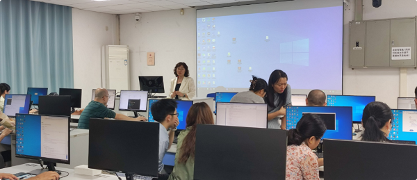 下午的实操环节,参训教师根据操作指引开展AI融入案例实践,完成从获取大模型API、配置本地API环境、安装Jupyter到复现案例的全流程操作。伟德国际1946bv官网技术支持团现场为外国语公司教师答疑解惑,针对技术问题和案例设计展开探讨交流,气氛热烈。